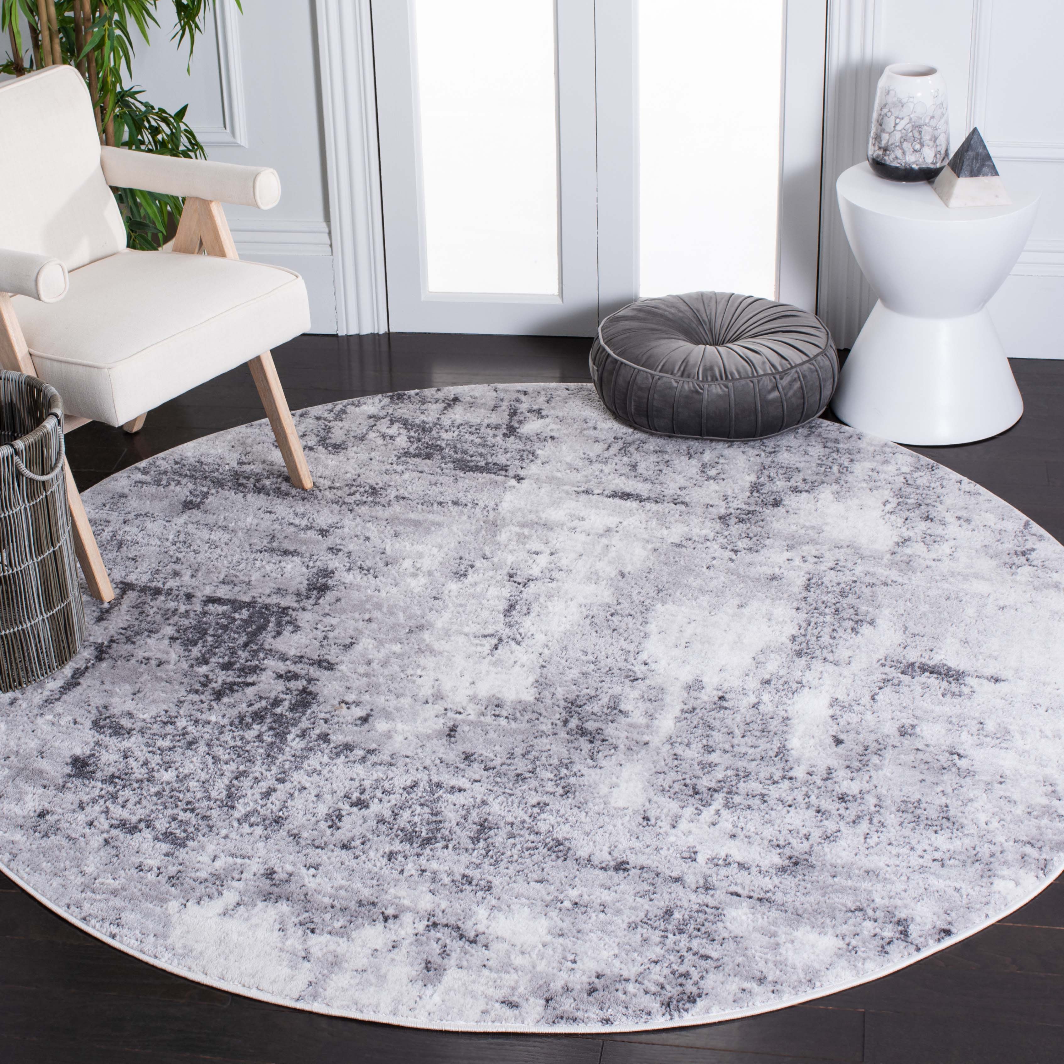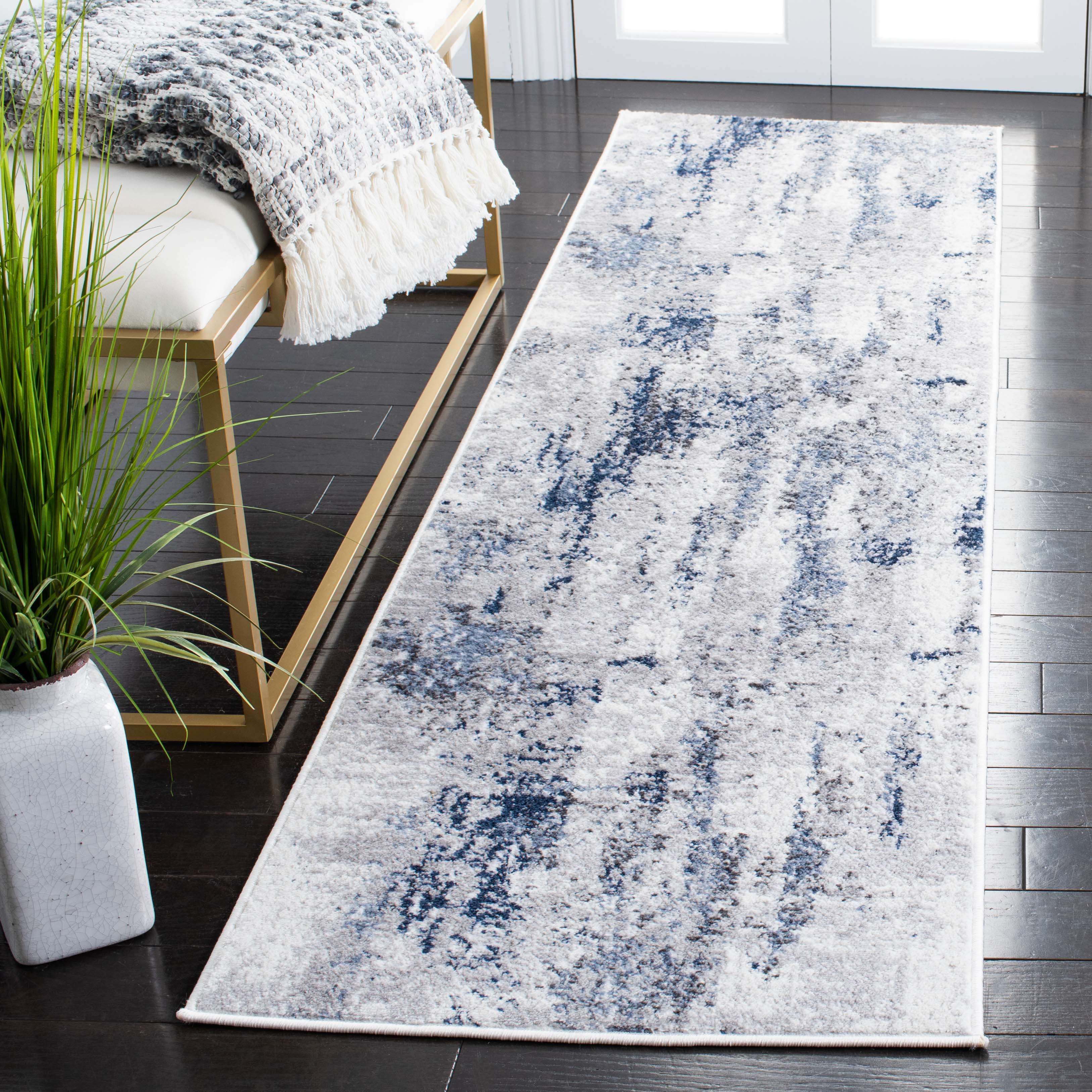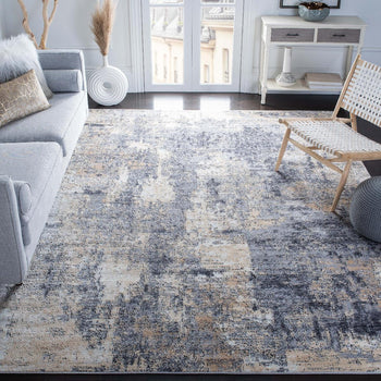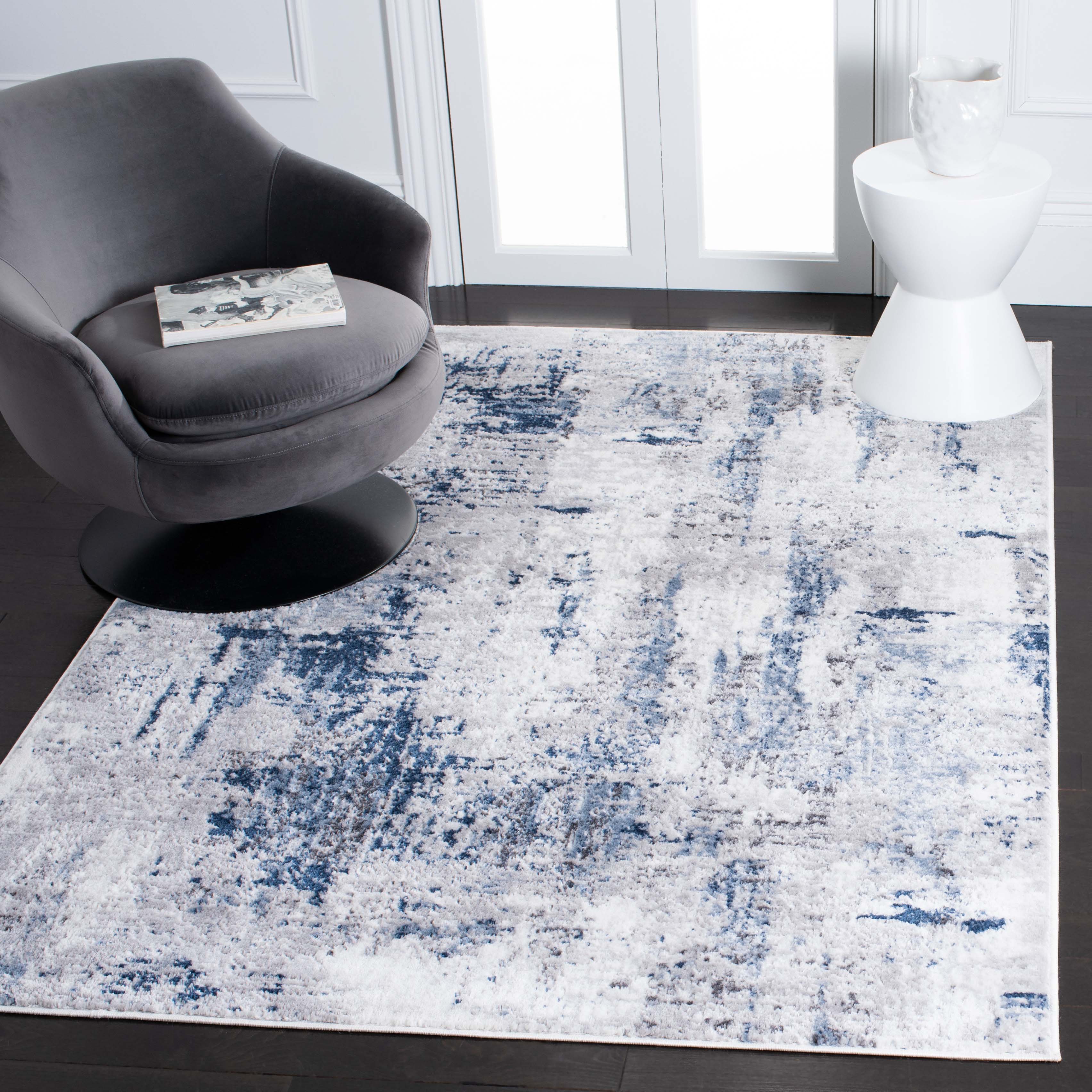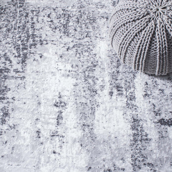 The contemporary style of this rug is complemented by a unique pattern, showcasing an abstract array of brush strokes and smudges that create a modern, distressed look. The combination of meticulous craftsmanship and modern design makes this area rug a statement piece for any home or office.