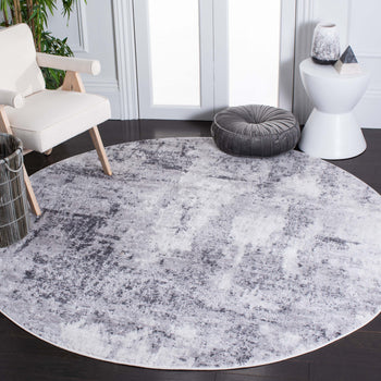 The contemporary style of this rug is complemented by a unique pattern, showcasing an abstract array of brush strokes and smudges that create a modern, distressed look. The combination of meticulous craftsmanship and modern design makes this area rug a statement piece for any home or office.