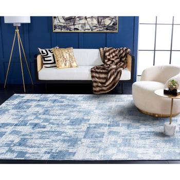 Introduce a blend of contemporary sophistication and modern comfort to your space with this stunning accent rug. Sized at a versatile 2'-2" X 4', its 3/8 inch pile height is perfect for high traffic areas while providing a soft underfoot experience. The blue and grey hues interweave in an enchanting abstract pattern, evoking a sense of calm and elegance that complements a wide range of decor styles.