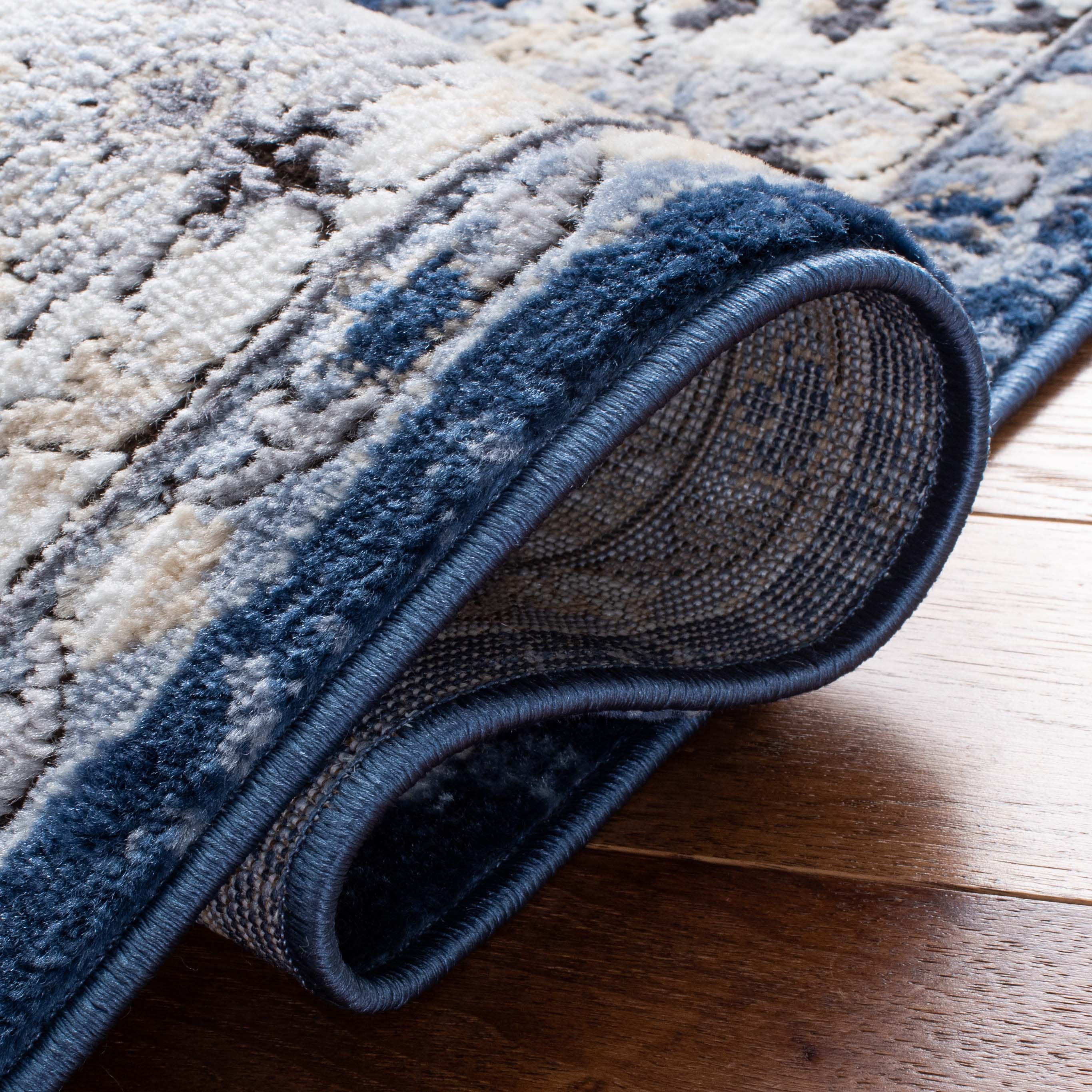 Elevate your hallway or entryway with our timeless Contemporary Navy/Ivory Runner Rug. Expertly crafted in Turkey, this power-loomed piece promises durability and a luxurious underfoot experience thanks to its plush 3/8" height. Its harmonious blend of 75% Polypropylene and 25% Shrink Polyester ensures the rug's lasting beauty, while the OEKO-TEX certification offers peace of mind, affirming that it's free from harmful substances. Adorned with an intricate, traditional pattern that exudes sophistication, this 2'-2" X 8' runner will infuse any space with an air of elegance. Embrace the allure of this captivating addition to your home decor.