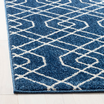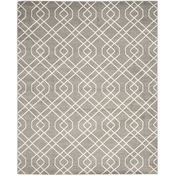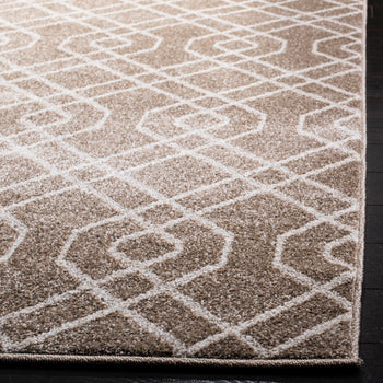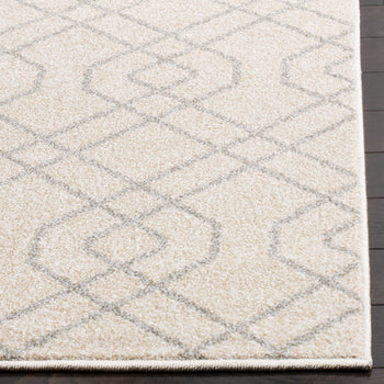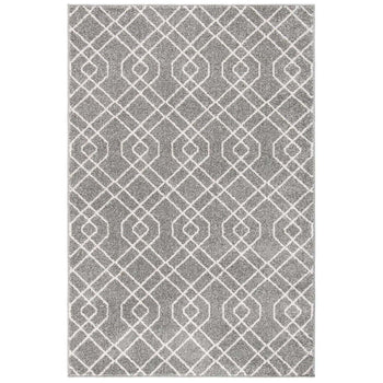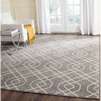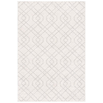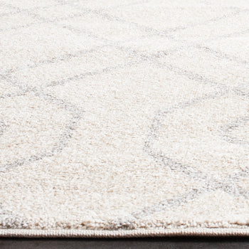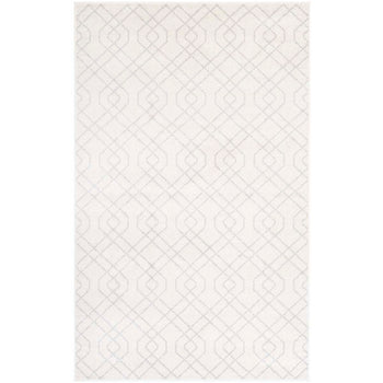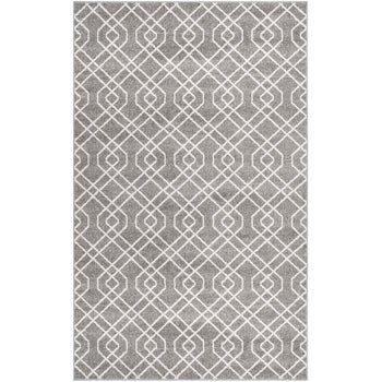 Enhance your space with the understated elegance of our 4' X 6' grey and ivory area rug. Expertly crafted in Turkey, this small rectangular rug boasts a low pile height of 3/8" for a sleek profile and easy maintenance. The power-loomed construction ensures durability and a precise design, featuring a sophisticated geometric pattern that adds a modern touch to any room.