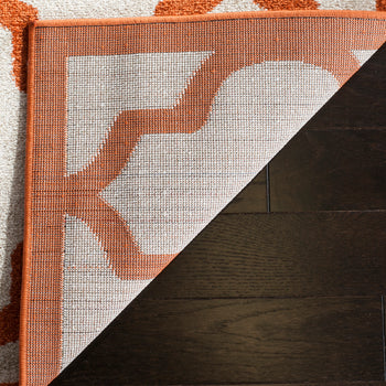 Crafted using advanced power-loomed techniques, this rug boasts a durable construction of 67% polypropylene, 18% fibrillated polypropylene, 8% latex, and 7% poly-cotton (warp), ensuring a resilient and long-lasting addition to your home. The subtle 3/8" pile height creates a plush texture underfoot while remaining easy to clean and maintain.