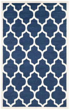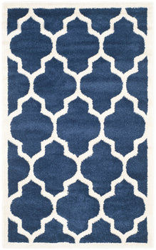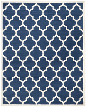Elevate your living space with our exquisite 10' x 14' navy and beige area rug. The large rectangle shape is perfect for anchoring furniture in a spacious room, boasting an eye-catching Moroccan-inspired trellis pattern for a sophisticated touch. Crafted in Turkey using advanced power-loomed technology, this rug offers a plush 3/8" pile height for underfoot comfort. The durable blend of 67% polypropylene, 18% fibrillated polypropylene, 8% latex, and 7% poly-cotton (warp) ensures longevity and ease of care. It's OEKO-TEX certified, ensuring safety and environmental standards. Imbue your home with this elegant piece that blends tradition with modern living.