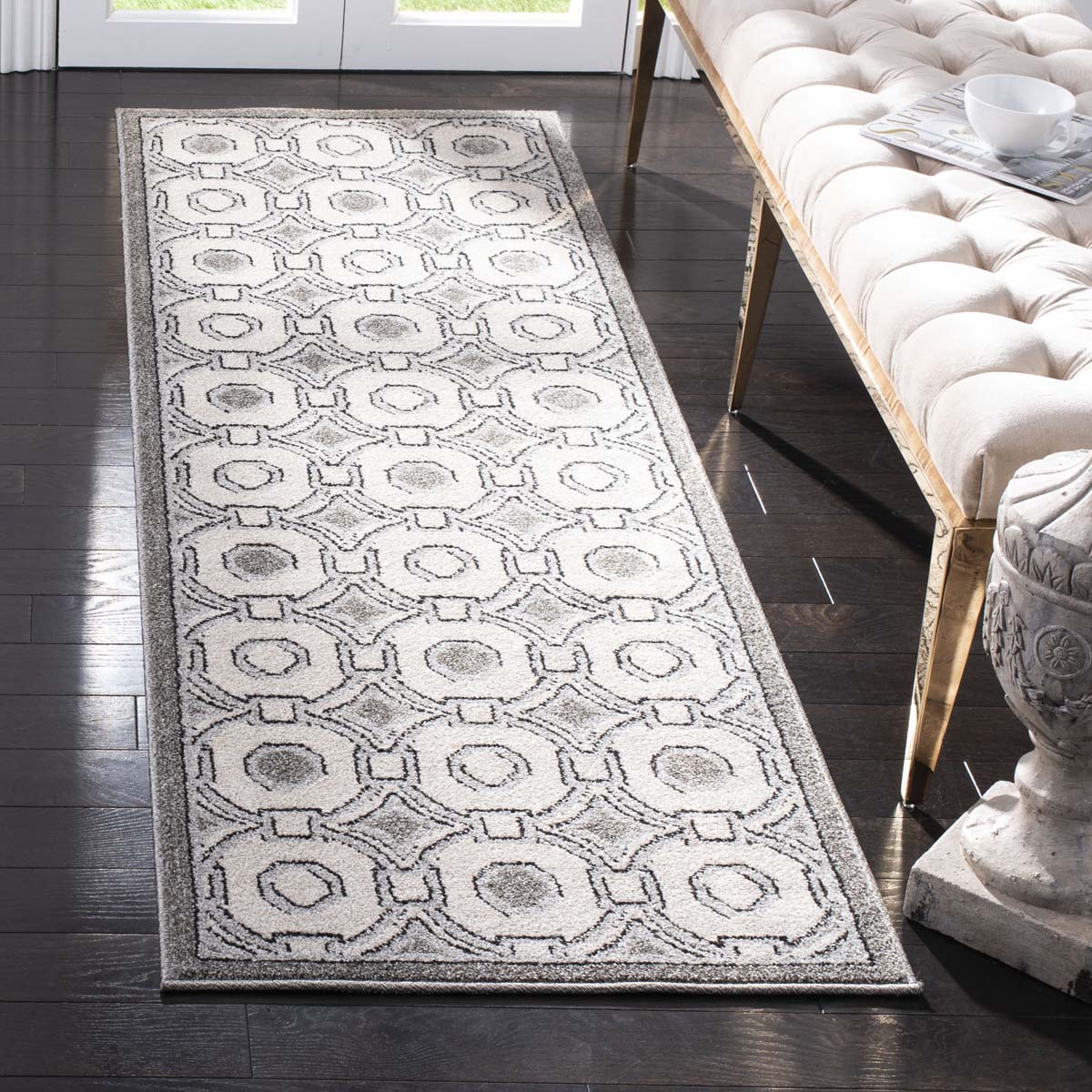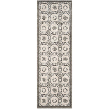 Elevate your space with the refined elegance of our 3' x 5' area rug in a light grey and ivory color palette. Crafted in Turkey, this small rectangle rug boasts a timeless geometric pattern that adds a touch of sophistication to any room. The rug features a comfortable 3/8" pile height and is power loomed with skillful precision, ensuring durability and long-lasting beauty. The exquisite blend of 67% Polypropylene, 18% Fibrillated Polypropylene, 8% Latex, and 7% Poly-cotton (warp) creates a soft, yet strong foundation that is both family and pet-friendly. Proudly OEKO-TEX certified, this piece ensures safety and eco-friendly enjoyment without harmful substances. Ideal for high-traffic areas, it's a perfect blend of style and functionality.