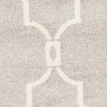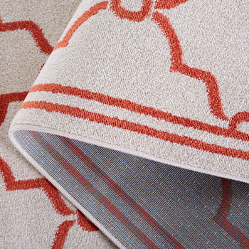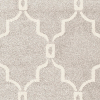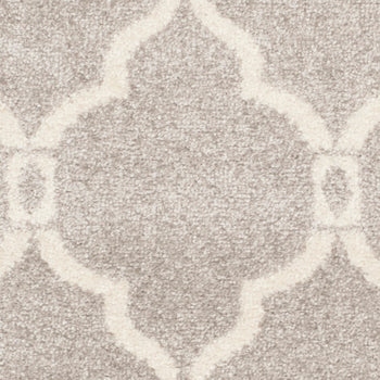 Featuring a sophisticated Moroccan-inspired trellis pattern, the design brings a touch of exotic charm to your decor, while maintaining a contemporary and versatile appeal. The construction blend of 67% polypropylene, 18% fibrillated polypropylene, 8% latex, and 7% poly-cotton (warp) ensures durability and a soft touch with a comfortable 3/8 inch pile height.