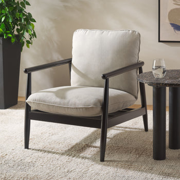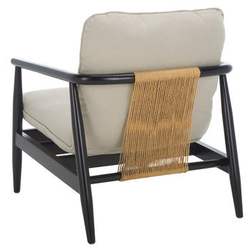 Bring fresh sophistication and style to your living space with our Amias accent chair. A refined silhouette and mixed material elegance make our chair an elevated and versatile addition. Its slim and sculpted solid wood frame is complemented with plush cushions to offer a comfy seat. A hemp rope detail at the back lends rich texture and eye-catching detail to our style-forward chair. Finished off with grey linen and a black frame, the occasional chair easily transitions from a refined lounge and office to a cozy reading nook in your bedroom.