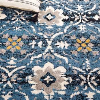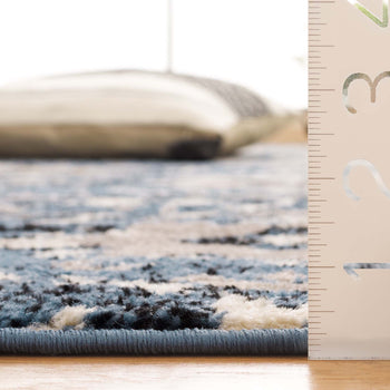 Introducing our exquisite Runner Area Rug, a blend of contemporary design and traditional comfort in the versatile size of 2'-3" X 8'. Crafted in Turkey, this rug features a sophisticated blue and creme color palette that brings a serene elegance to any hallway or long space in your home. Its power-loomed construction with a durable 100% polypropylene pile ensures longevity and ease of maintenance, while the low 1/4" pile height allows for seamless placement in high-traffic areas without hindrance to doorways.