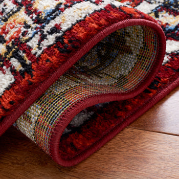 Introducing our exquisite runner rug, a true masterpiece in the realm of floor decor. Spanning an elegant length of 2 feet 3 inches by 8 feet, this stunning carpet is a perfect blend of tradition and sophistication. Its radiant red hues exude warmth, creating a welcoming atmosphere in any hallway or entryway.