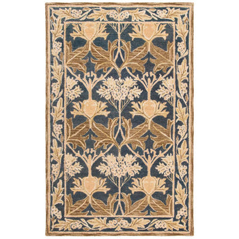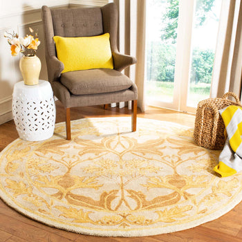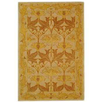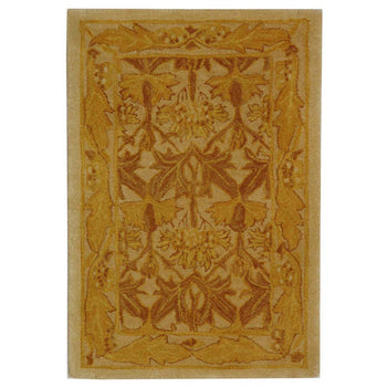 Elevate your space with the timeless elegance of our 2' X 3' accent rug. Hand-tufted by skilled artisans in India, this wool rug boasts a plush 3/8" pile height that provides luxurious comfort underfoot. The exquisite beige and gold palette exudes sophistication, while the intricate floral and vine pattern creates a classic look that complements both traditional and contemporary decors. Each detail is meticulously crafted, offering an heirloom-quality piece that brings warmth and refined style to any room. Whether placed by your bedside, under a coffee table, or in your entryway, this rug promises to be a beautiful and durable addition to your home.