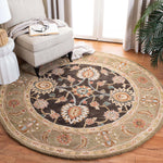 Cloaked in an alluring palette of taupe and grey, this rug presents a harmonious balance of hues, perfect for complementing any interior decor. The traditional pattern informed by the image showcases intricate floral and ornamental motifs, lending sophistication and depth to its design.