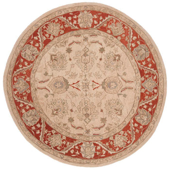 Elevate your space with our exquisite 6' X 6' Round area rug, a testament to timeless elegance and luxurious comfort. Expertly hand-tufted in China, this wool pile rug showcases an exceptional blend of taupe and red hues, layered with traditional patterns that promise to enrich any room with its sophisticated charm. The round shape provides a unique, softening touch to your decor, making it an ideal choice for both contemporary and classic interiors. Indulge in the artistry of its intricate design and enjoy the plush, durable comfort that only a wool rug can offer. Perfect for adding warmth and a hint of opulence to your favorite space.