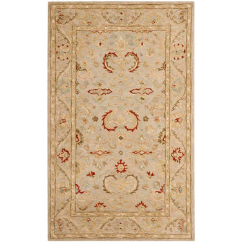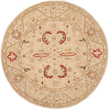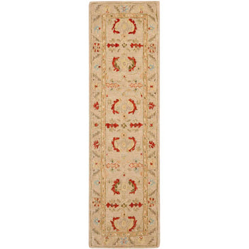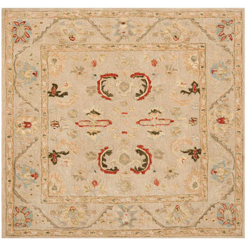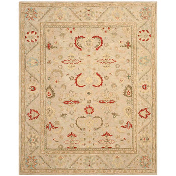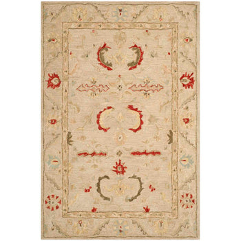 Elevate your living space with our luxurious 4 x 6 Beige/Beige Wool Pile Area Rug, a small rectangle-shaped masterpiece that embodies elegance and sophistication. Crafted with meticulous care through hand-tufted techniques, this rug boasts a durable and plush wool pile. Its intricate pattern features traditional floral and vine motifs in a subtle yet enchanting palette, with hints of red, green, and blue accents that enhance the neutral beige background.