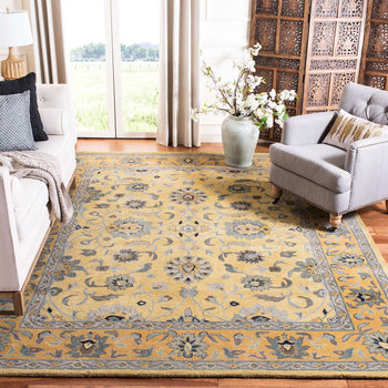 Experience the elegance of our hand-tufted wool pile area rug, a sublime blend of Golden Pear and Smoke hues that encapsulate sophistication. Crafted in the historic textile workshops of China, this small rectangular piece (3' X 5') is a testament to timeless artistry. Adorn your space with its intricate floral motif, featuring stylized blossoms and palmettes intertwined with delicate vines, creating a mesmerizing lattice that is both classic and contemporary. The plush wool construction promises enduring beauty and exquisite comfort underfoot. Elevate your home with this luxurious accent, where design heritage meets modern living.