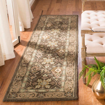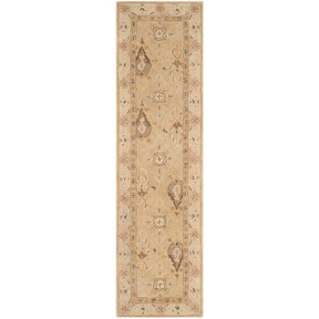 Elevate your space with this exquisite 2'-3" X 8' runner area rug, crafted with impeccable attention to detail. The warm beige tones set a neutral yet inviting backdrop for any room. Each pattern on this rug?an intersection of floral motifs and intricate accents?is delicately hand-tufted by skilled artisans for a plush wool pile that promises comfort underfoot.