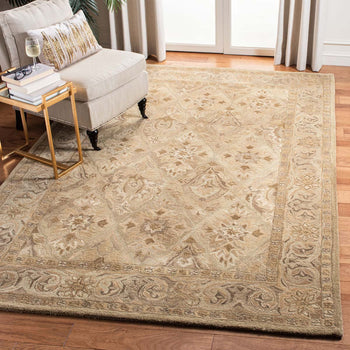 Carefully constructed in China, this rug blends traditional craftsmanship with a timeless style. Its detailed patterns bring a touch of elegance to the classic beige color, creating a harmonious design that will complement various decors from contemporary to classic.