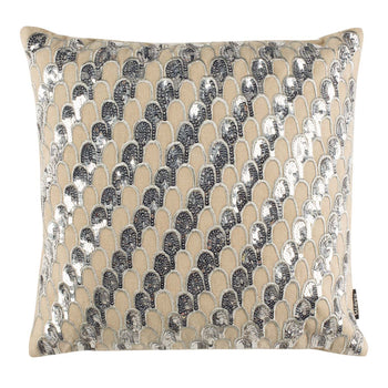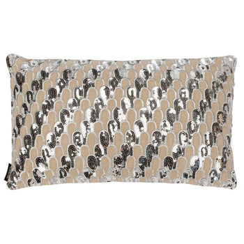 Sassy and posh, the Safavieh Angelien Pillow is a strike of style lightening, instantly updating and refreshing any sofa, chair or loveseat with its glam grandeur. Bold flashes of light beige and silver create a contemporary Deco style pattern. Chic and dramatic, it's the diva in any room.