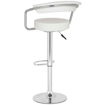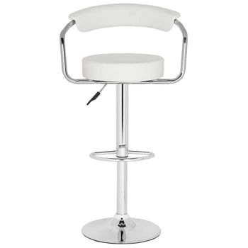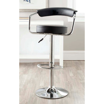 Reach for the retro. The Angus Bar Stool's contemporary spin on mid century classic style is a fun companion for bar or counter. Its raised back with sleek chrome accents, black seat that adjusts from 25.2" to 31.5" and 360 degree swivel are perfect for kids or those who are just kids at heart.
