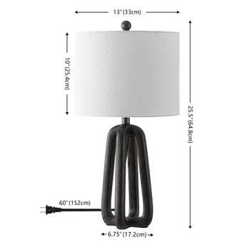 Illuminate your space with the Anine black resin table lamp. Standing at 25 inches, this elegant piece seamlessly blends into any decor with its modern design and sleek black finish. The resin body adds a touch of sophistication, while the fabric shade offers a soft ambient glow, perfect for living rooms, bedrooms, or offices. Whether placed on a side table or a desk, Anine enhances your space with a stylish yet functional presence. Its clean lines and minimalist aesthetic make it an ideal choice for those who appreciate understated elegance. Add a touch of charm and illuminate your home with the Anine lamp.