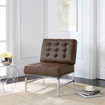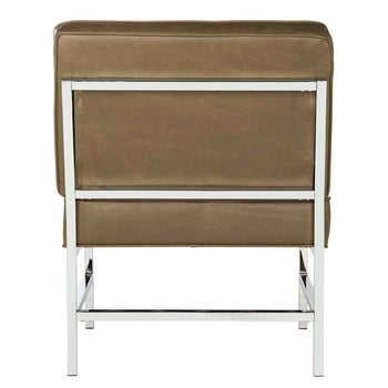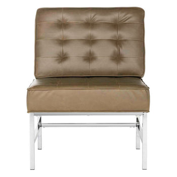 Designed for the life of the modern jetsetter, this contemporary armless sofa chair brings urbane style to any interior. Inspired by a Mies van der Rohe design classic, its neutral antique taupe upholstery and metallic legs accentuate its clean lines.