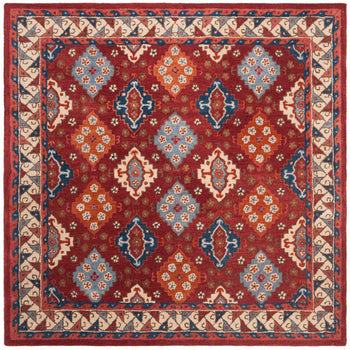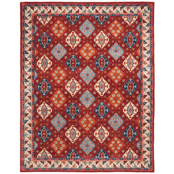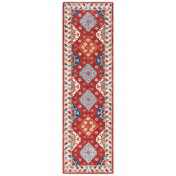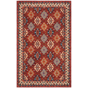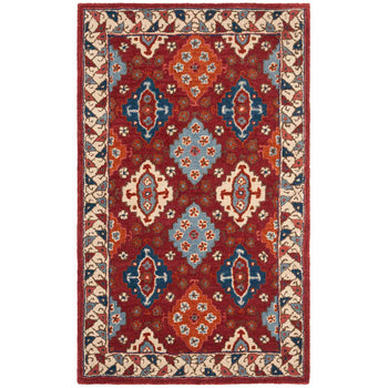 Introducing our exquisite 3' X 5' small rectangle area rug, a testament to traditional craftsmanship and timeless design. Hand-tufted in India, this rug embodies the perfect blend of heritage and quality, featuring a rich tapestry of red and blue hues that bring warmth and vibrancy to any space.