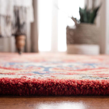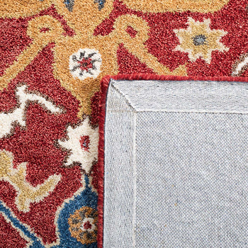 Introduce timeless elegance to your home with our 3' x 5' small rectangle traditional area rug, a masterpiece of craftsmanship that brings the vibrant warmth of red and the cheerful brightness of yellow into any space.