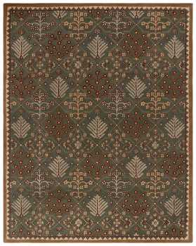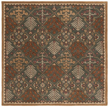 Adorned with a traditional pattern that exudes classic elegance, the rug features symmetrical botanical motifs and intricate borders. The design flourishes with a combination of serene light blue and opulent gold tones, creating a harmonious balance suited for both contemporary and traditional decors. The wool construction not only offers a soft, plush feel underfoot but also ensures lasting quality and natural resistance to stains and dust.