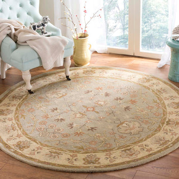 Elevate your living space with the timeless elegance of our 3' X 5' area rug, showcasing a harmonious blend of light grey and beige tones. This small rectangle rug exudes classic charm with a sophisticated pattern that draws inspiration from traditional design, featuring delicate floral and vine motifs intricately hand-tufted by skilled artisans from India.