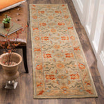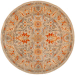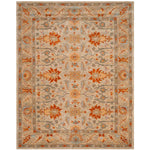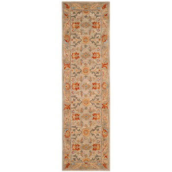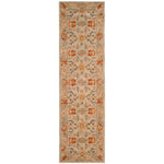 Adorned in soothing shades of beige, harmoniously complemented by a multi-color palette, this rug features a traditional design that exudes a classic charm. Its intricate pattern, depicted in warm, inviting tones of orange, cream, and subtle hints of blue and green, adds depth and character to any hallway or elongated space.