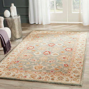 Introduce timeless elegance into your home with our exquisite hand-tufted wool area rug. Expertly crafted in India, this sophisticated 2' X 3' accent rug boasts a serene palette of grey blue and beige, invoking a sense of calm and harmony in any space it graces. The plush wool construction ensures a luxurious feel underfoot, while the traditional design, featuring intricate patterns and florals, provides an anchor of heritage charm.