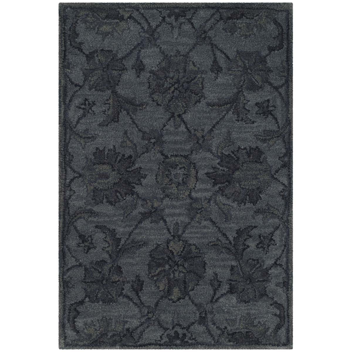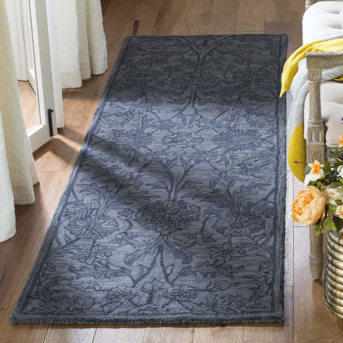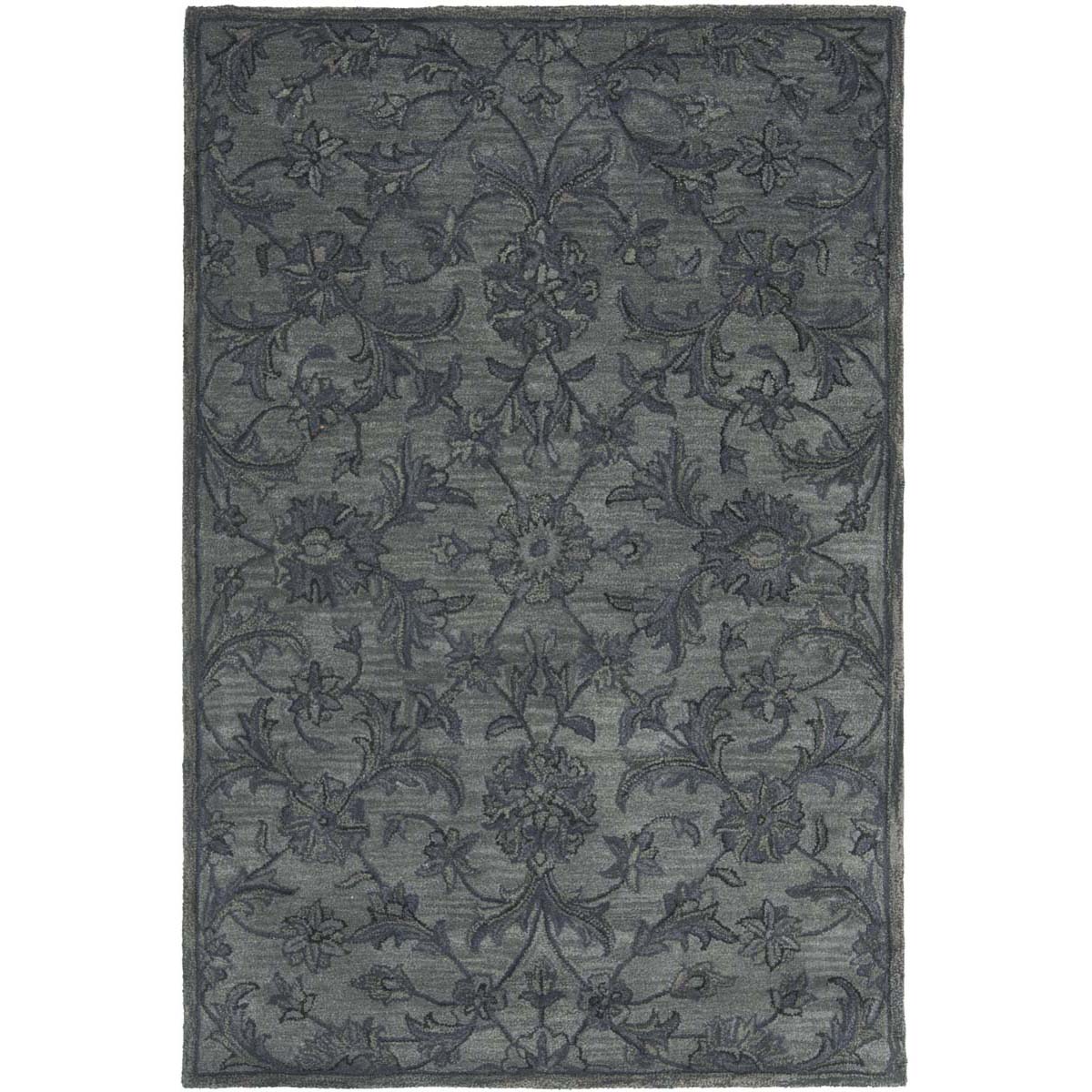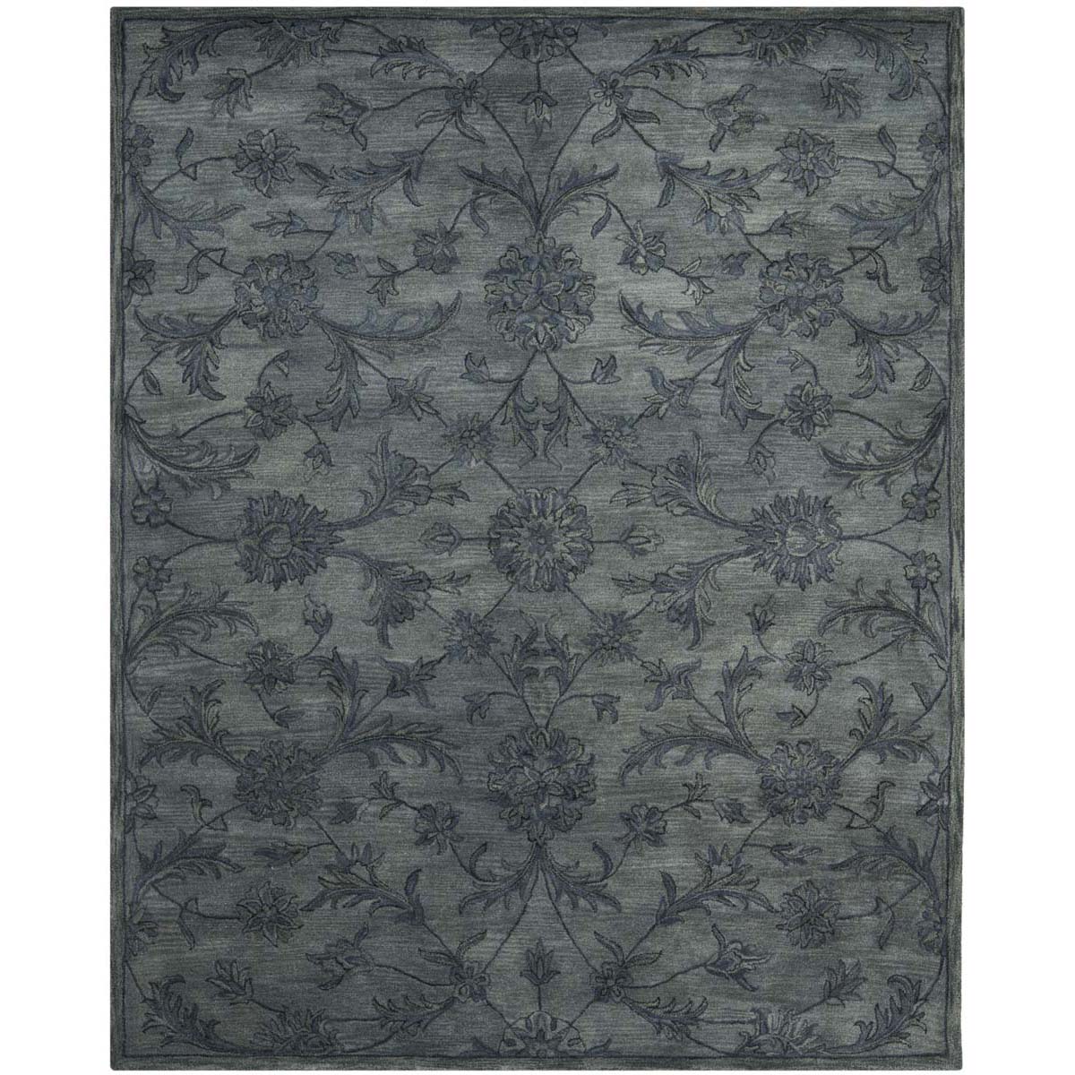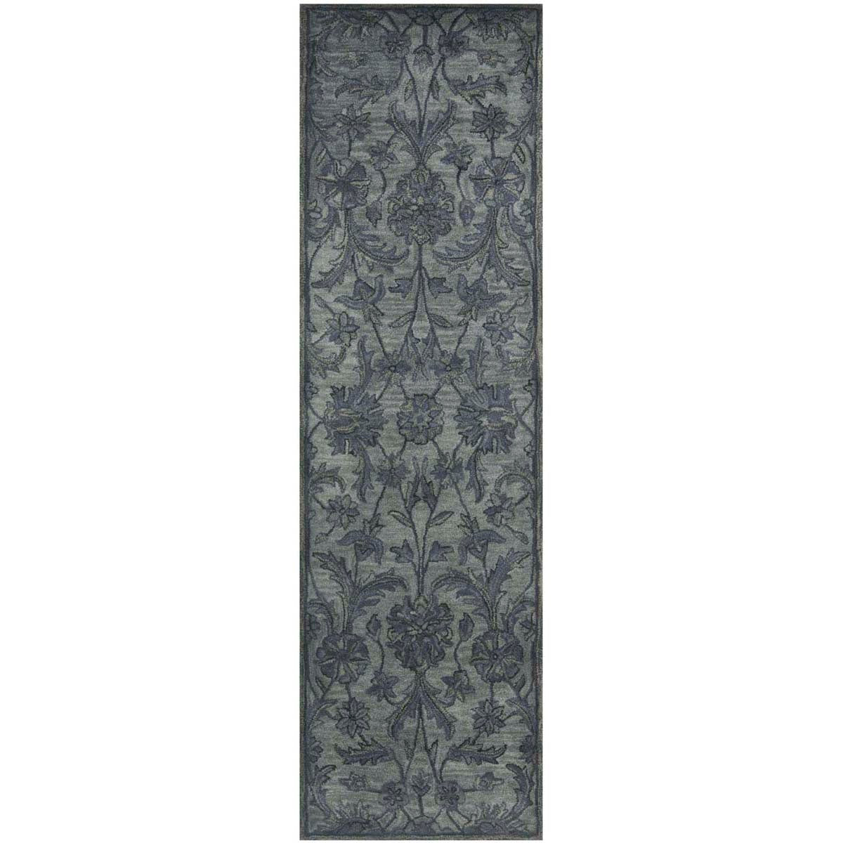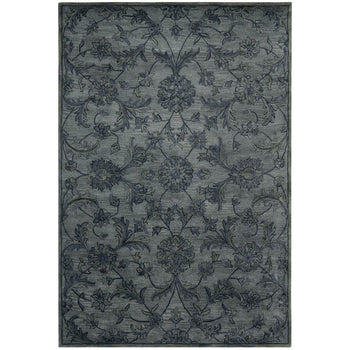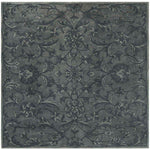 The rug's grey and multi-tonal palette is elevated by a sophisticated pattern that showcases intricate floral motifs and scrolling vine work. The deliberate use of varying shades of grey adds depth and dimension to the design, allowing the pattern to stand out subtly yet significantly. This nuanced detailing enables the rug to complement a diverse range of interior color schemes, enhancing both contemporary and classic settings.