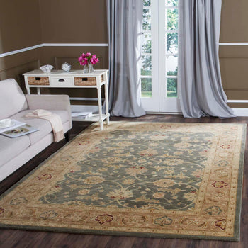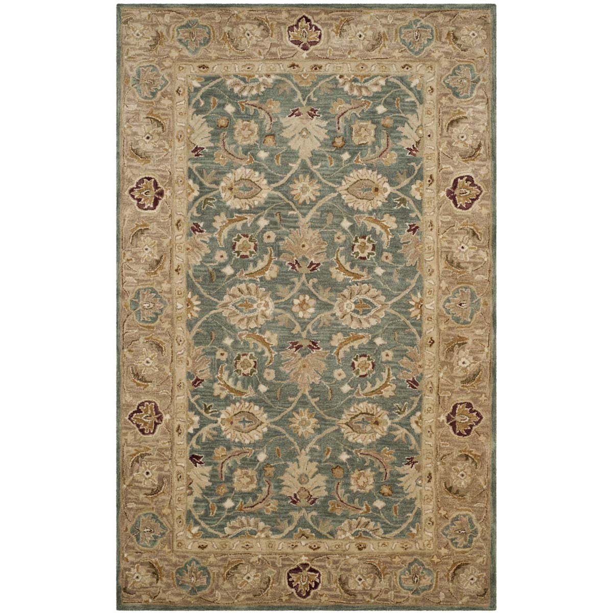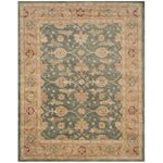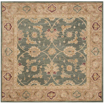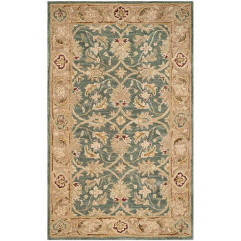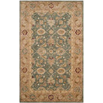 Drawing inspiration from the intricate patterns featured in the image, this rug showcases a regal motif that whispers tales of ancient opulence and high art. Its classic border frames a sea of teal blue, graced by taupe accents and periodic flourishes of deeper hues, creating a visual symphony that will enhance any space.
