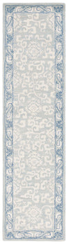 Elevate your indoor space with the exquisite charm and elegance of our light blue and ivory area rug. Crafted to perfection in the size of a small rectangle measuring 3' x 5', this hand-tufted gem is a seamless blend of tradition and modernity.