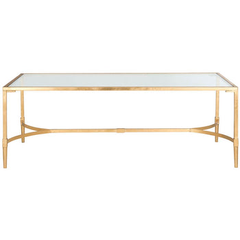 The epitome of sophistication, the Antwan Coffee Table brings a designer look to the living room or entry hall. A fabulous spectacle of metal artistry, Antwan is crafted of solid iron in a gilt and lacquer finish with a tempered glass top.