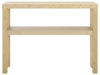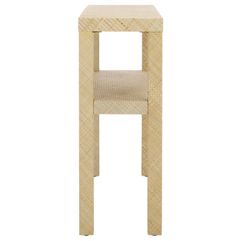 Indulge in the essence of nature with the APIS RAFFIA 2 Shelf Console Table. This product, available in a radiant Natural colour, effortlessly merges style and functionality in your home. Composed of Wood, Mdf and Tiker Pandan, this console table showcases a great blend of enduring toughness and sophisticated charm. The 2 shelves offer ample space for your treasured possessions and home decor items, ensuring they are beautifully presented yet easy to access. Creating a soothing, earthy feel in any space, this console table is sure to become an integral part of your home ambiance. The APIS RAFFIA 2 Shelf Console Table - where nature meets elegance.