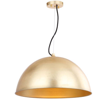 A radiant source of illumination, this contemporary dome pendant is a classic. Designed with elegant simplicity, its gentle curves are finished in brilliant gold leaf. Its decadent industrial luxe style is ideal for the living room, dining room or hall.
