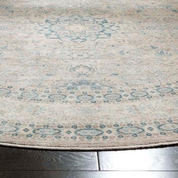 Introduce timeless elegance into your home with the exquisite design of our 5' x 5' Round Area Rug. Crafted with a delicate balance of grey and blue hues, this round rug brings a serene and sophisticated atmosphere to any room. At a comfortable height of 1/4", the flat weave construction ensures durability while offering a low profile for easy placement under furniture.