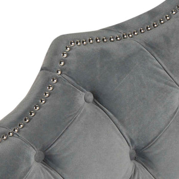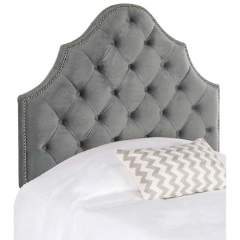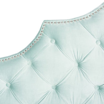 Furnishings that outfit the hotel suite that's a second home to the residents of Buckingham Palace inspired this tufted velvet headboard. Designed for the boudoir of the modern princess, its upholstery is adorned with polished nailhead detail.