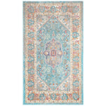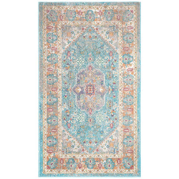 Made in Turkey, renowned for its legacy in rug-making, our runner offers an effortless blend of old-world charm and contemporary design sensibilities. The beautiful transitional style is highlighted through the intricate patterns, clearly visible in the provided image, that evoke a sense of history mingled with modern elegance. Delicate medallions and floral motifs are scattered across the serene blue field, bordered by subtle hints of warm earth tones that add depth and character to its appearance.
