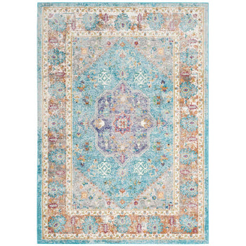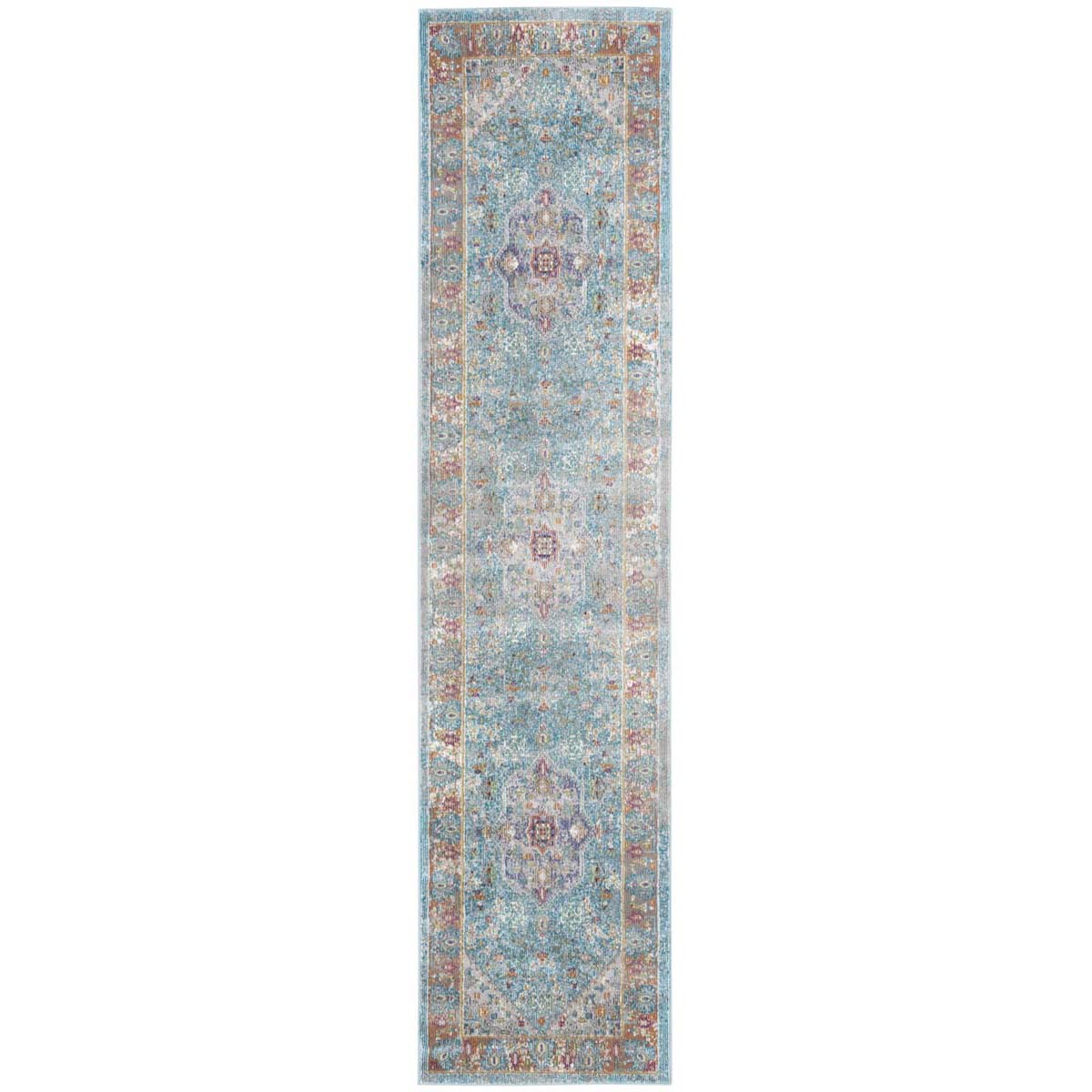 The rug's enchanting blue and creme color palette creates a serene foundation for any hallway or narrow space, while its polypropylene pile construction ensures easy maintenance and resilience against the comings and goings in busy households.