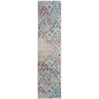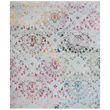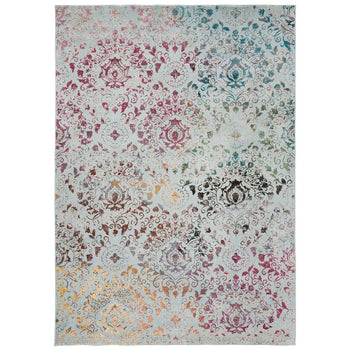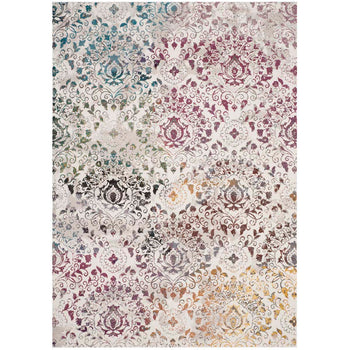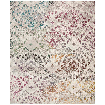 At a comfortable 1/4" height, this 2'-3" X 3'-9" rug offers a plush feel underfoot without compromising on easy maintenance, making it an ideal choice for high-traffic areas or anyone desiring low-fuss luxury. The intricate designs, drawn from the richness of classic motifs, are rendered in a harmonic palette that includes shades of cream, blues, purples, and hints of gold, creating a visual feast that?s versatile yet bold.