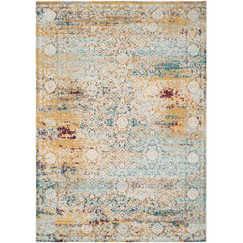 Designed with a sophisticated transitional style, it seamlessly blends traditional charm with contemporary flair, making it a versatile addition to any decor. The rug features a harmonious blend of beige and blue tones that are accented with subtle hints of gold, red, and green, creating a rich yet understated backdrop that complements a variety of color schemes.