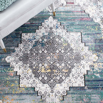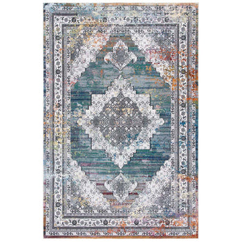 Elevate your living space with the timeless elegance of our 4' X 6' Ivory/Blue Area Rug. Crafted with meticulous detail in Turkey, this small rectangle rug is an exquisite addition to any room, blending traditional design with a modern twist. The intricate pattern captures the eye with a central medallion encased in a harmonious balance of soft ivory and serene blue, surrounded by splashes of vibrant colors that tell a story of ancient artistry meeting contemporary style.