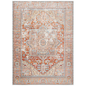 The rug showcases a stunning, intricate pattern abundant with traditional motifs that evoke an old-world charm with a modern twist. Its rich rust color palette is elegantly complemented by taupe undertones, creating a warm and inviting atmosphere in any room.
