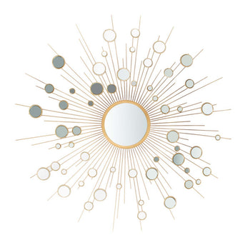 Bring a pop of mod style to the living room with this bold contemporary spin on the classic sunburst mirror. Finished in a deluxe gold hue, its glam design features outstretched arms with posh smaller mirrors that transform it into abstract wall art.