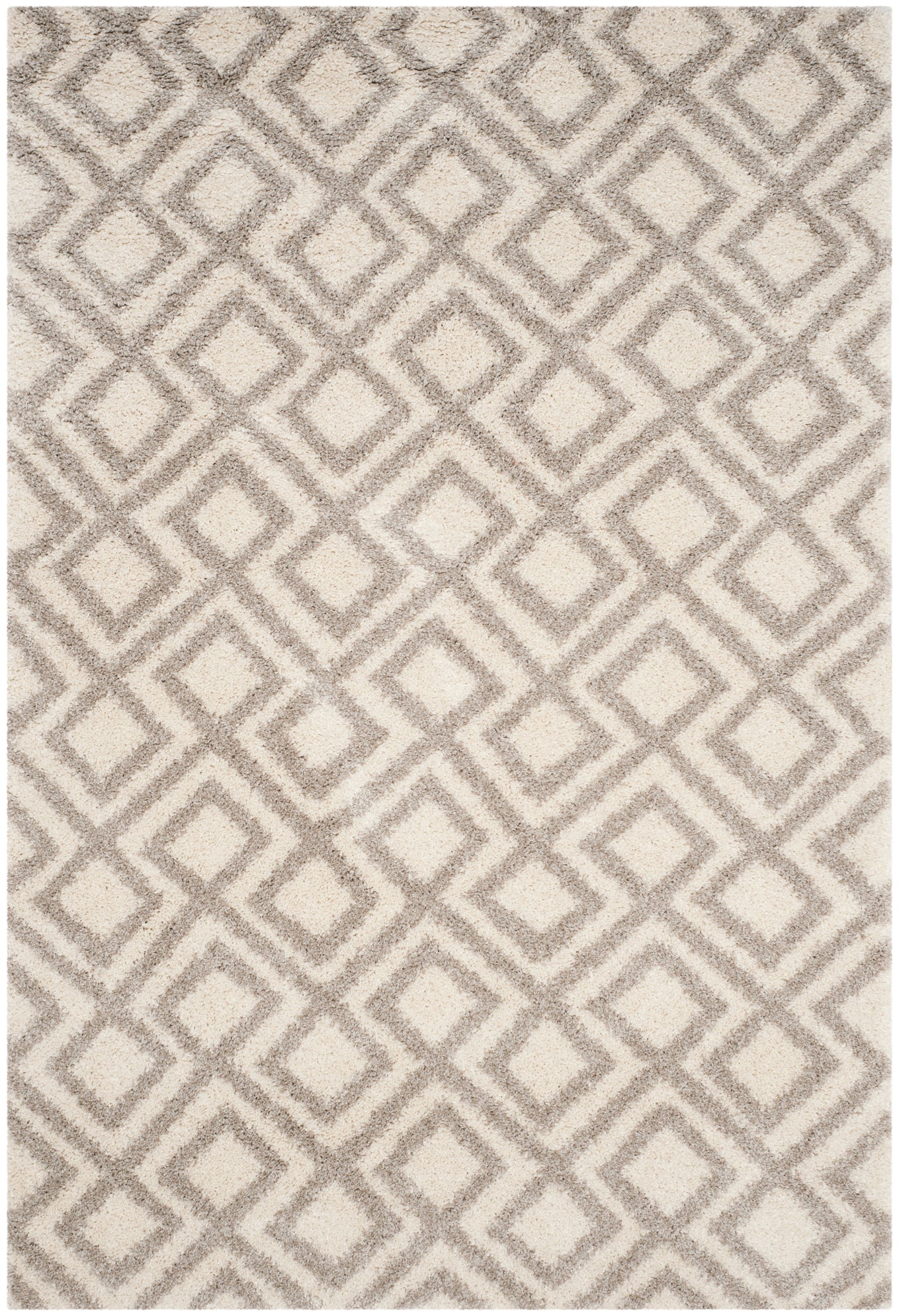 The rug's pattern, timeless in design, features a geometric diamond motif that brings a subtle, sophisticated touch to any room. The contrast of ivory and beige hues not only enhances the visual depth but also offers a contemporary twist to classic themes. This rug is a testament to impeccable taste and commitment to quality, poised to become the foundation of a chic, inviting home.