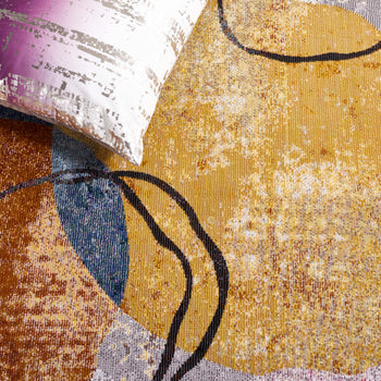 The artistic blend of ivory and blue hues creates a harmonious balance that easily complements a variety of decor themes. Abstract shapes and subtle textures intermingle across the rug, giving it a unique, expressive quality that serves as both a floor covering and a piece of art.