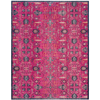Whether you're aiming to add a touch of glam to your living room, create a statement in your dining space, or bring warmth to your bedroom, this fuchsia/multi area rug is a perfect choice that combines timeless artistry with modern vibrancy.