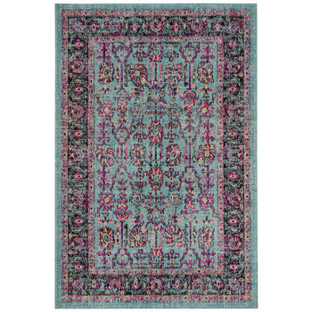 Elevate your living space with the exquisite charm of our 4' X 6' Small Rectangle area rug. Drawing inspiration from the timeless beauty of Turkish craftsmanship, this rug features a striking pattern that seamlessly blends light blue and black hues to create an entrancing visual symphony. The intricate designs and floral motifs showcased in the pattern of this rug will infuse your room with a touch of elegance and a classic feel.
