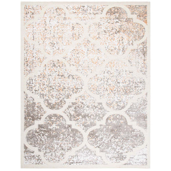 The exquisite design features a sophisticated pattern where latticework and floral elements combine to create a timeless aesthetic. The ivory base is beautifully complemented by gold and grey accents, creating a neutral palette that seamlessly blends with any decor.