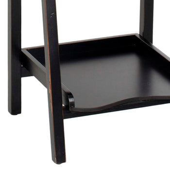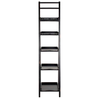 This Asher Leaning 5 Tier ?tag?re wholeheartedly embraces Americana country charm, making it essential in any farmhouse decor. Asher's multiple shelves in a bold black finish are perfect for displaying books, magazines, and all of life's accessories in any part of the home.